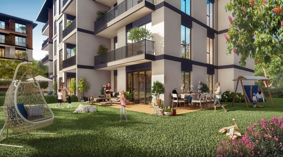 Our apartments for sale in İstanbul feature innovative low-rise horizontal architecture design. Additionally, this unique approach maximizes privacy while ensuring community connectivity. Furthermore, each apartment enjoys direct garden access and natural light abundance.