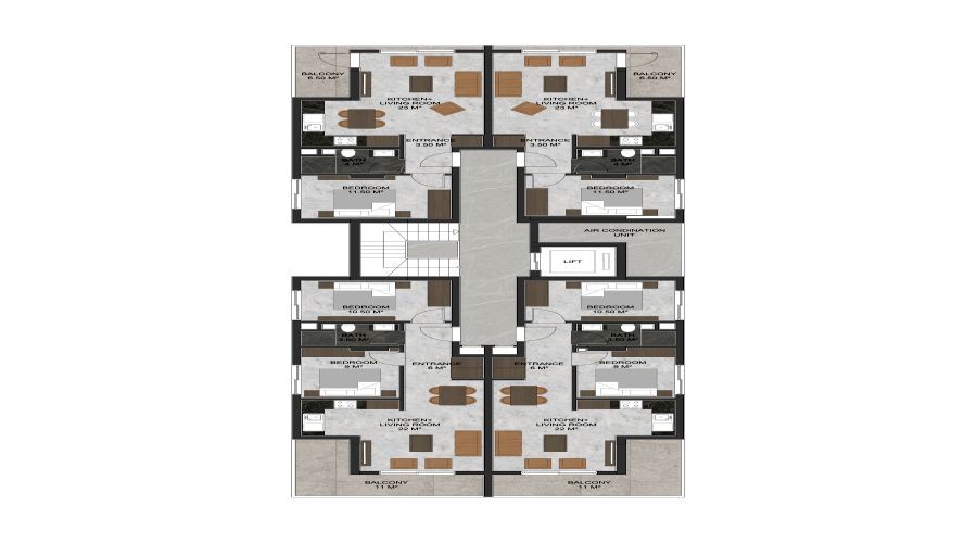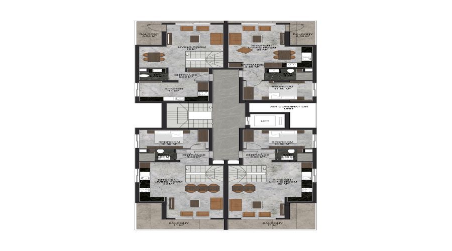 As a natural result of our company’s quarter-century competence and experience in the field of construction materials, our project, which was built with only first-class materials and first-class workmanship, includes large and useful living spaces.
