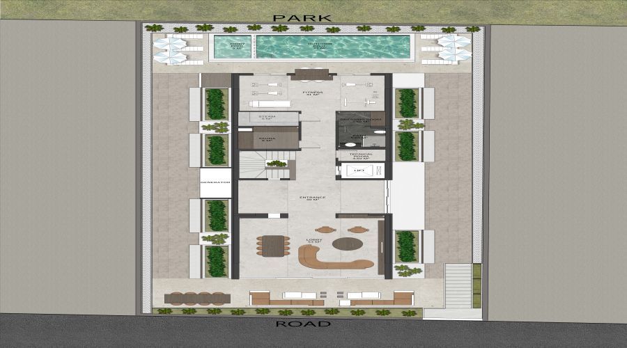 The project consists of 16 apartments and social facilities on a 627 square meter plot of land